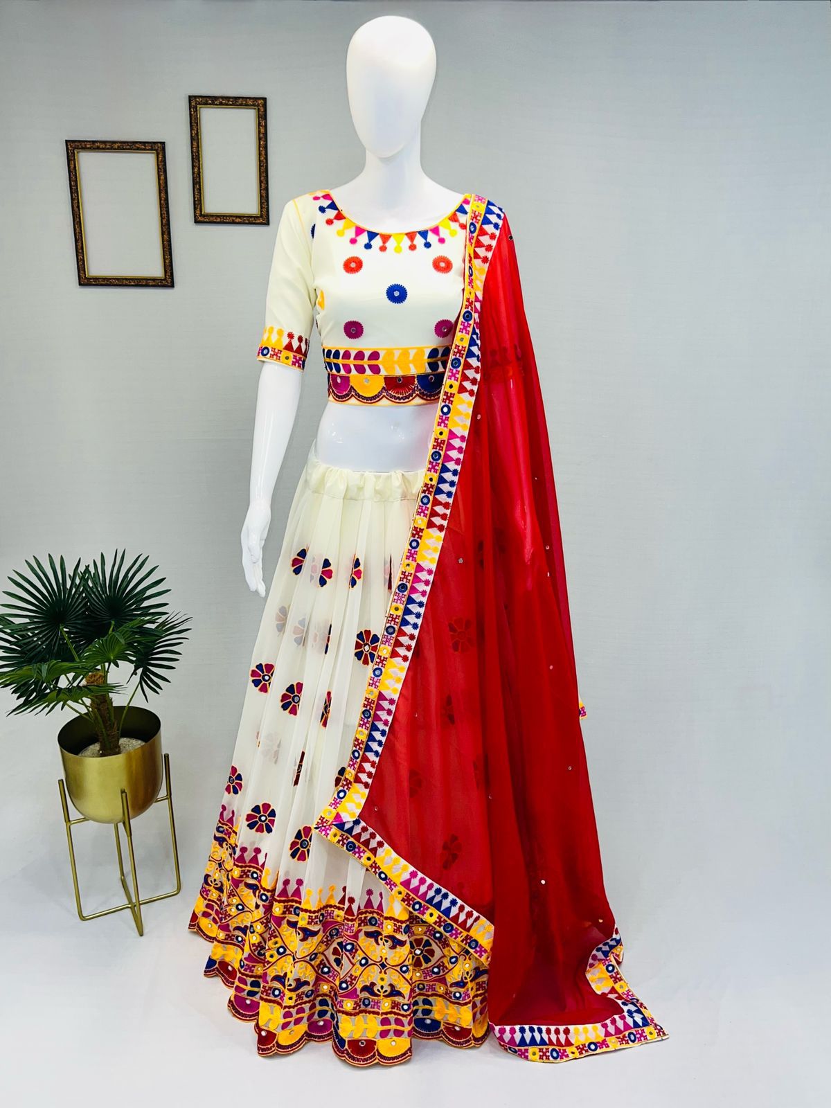 Miraculous White Color Georgette Silk Embroidery Lehenga Choli