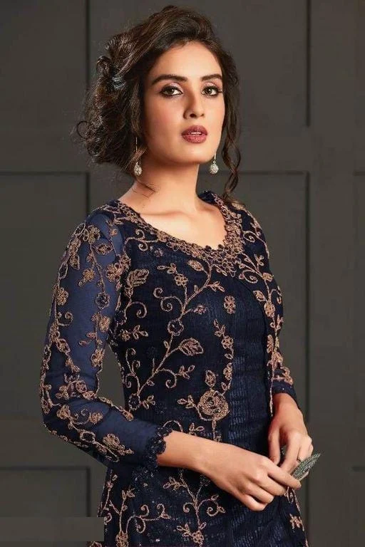 Fabric Details :- Top:-Heavy vaishnavi net with + Heavy sequence Embroidery work size 42Coti :- Heavy  vaishnavi net with + Heavy sequence Embroidery work Coding work+ Stone + Back side Heavy sequence Embroidery work size+54Sleeves :- vaishnavi net with Embroidery work  Stone Inner :- SatinBottom :- Heavy Net Satin with + sequence+ Embroidery work+Coding Work Length :- Max up to 44+ Size :-  Free Size Semi Stitched Dupatta :- Net+ Embroidery work+Coding Work Type :- (Material)