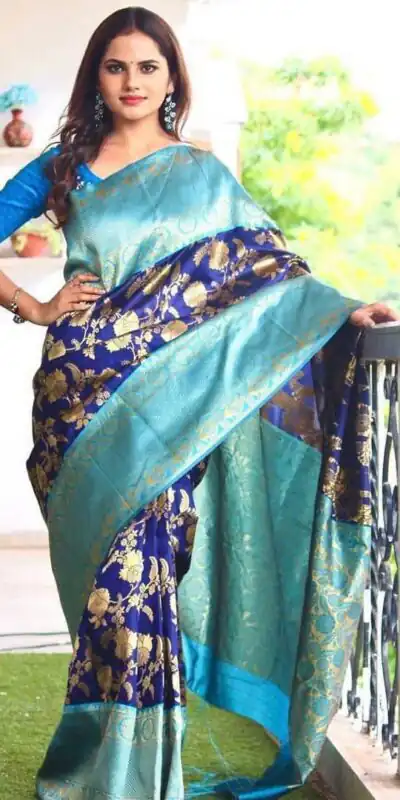 Navy Blue Soft Lichi Silk Border Jacquard Work Saree