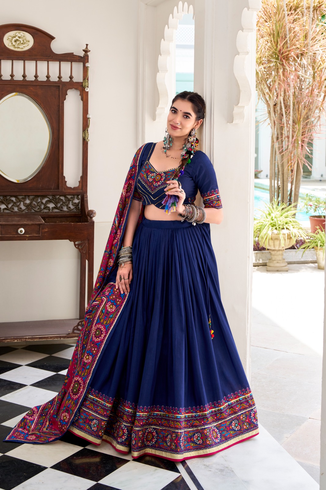 Navy blue Tasar Gamthi Print Work Lehenga Choli