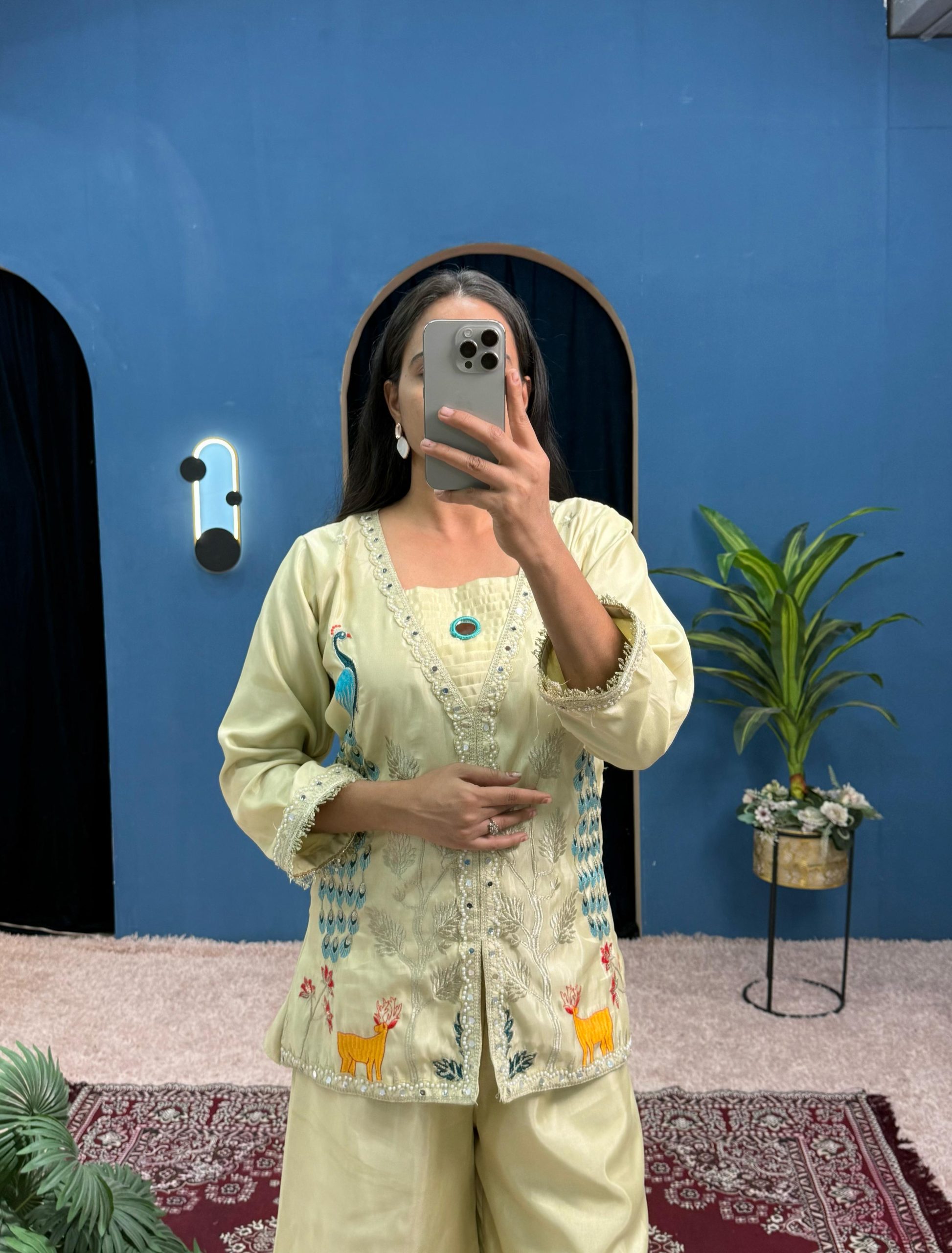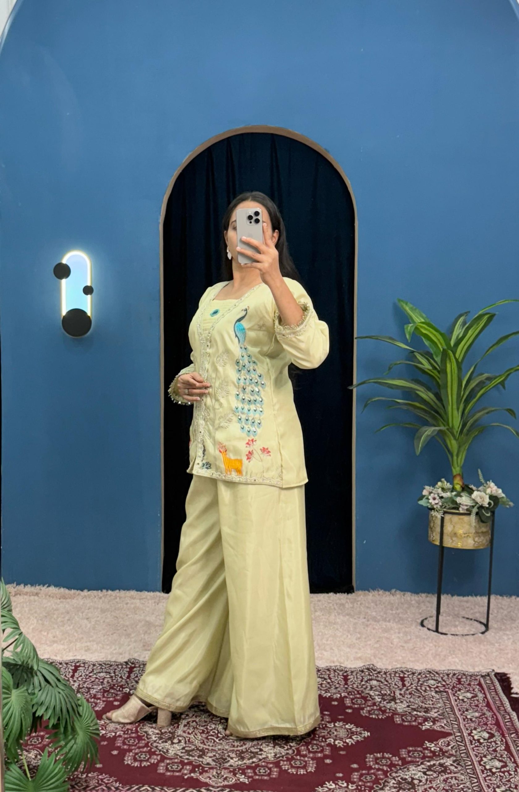 Light Pista Shimmer Embroidery Moti With Mirror Salwar Suit