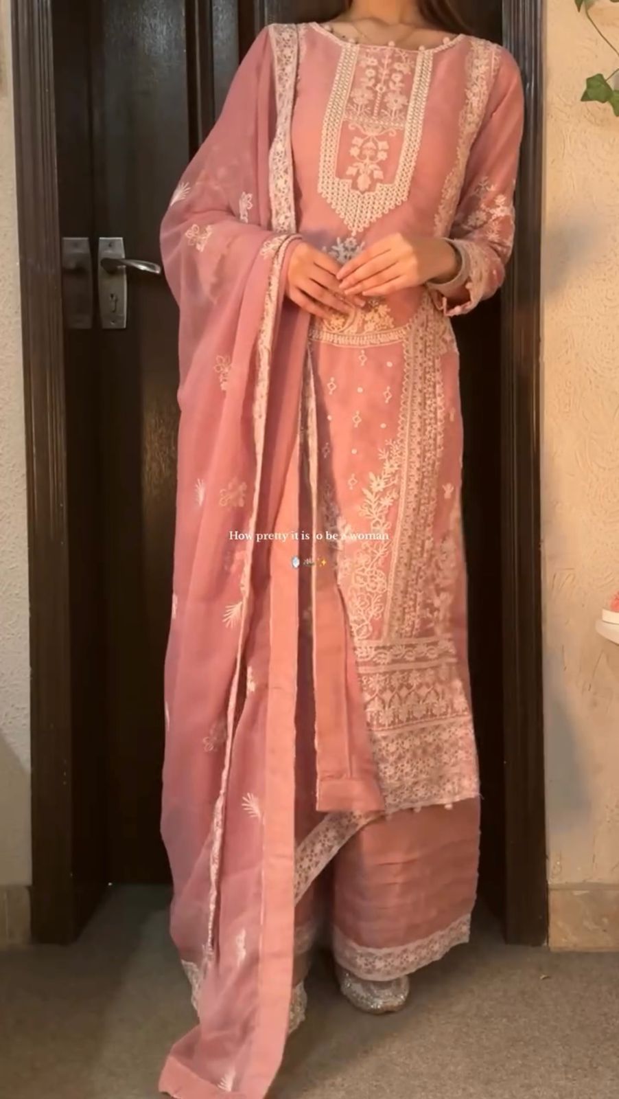 Top: Fabric : Georgette Work: Sequence Embroidery Work Inner : Micro Height : 46”inch Size : Free Size Semi Stitched Palazzo: Fabrics : Georgette Height : 40”inch Sequence Embroidery Work Plates On Bottom Size : Free Size Dupatta: Fabric: Georgette Sequence Embroidery Work On Border |