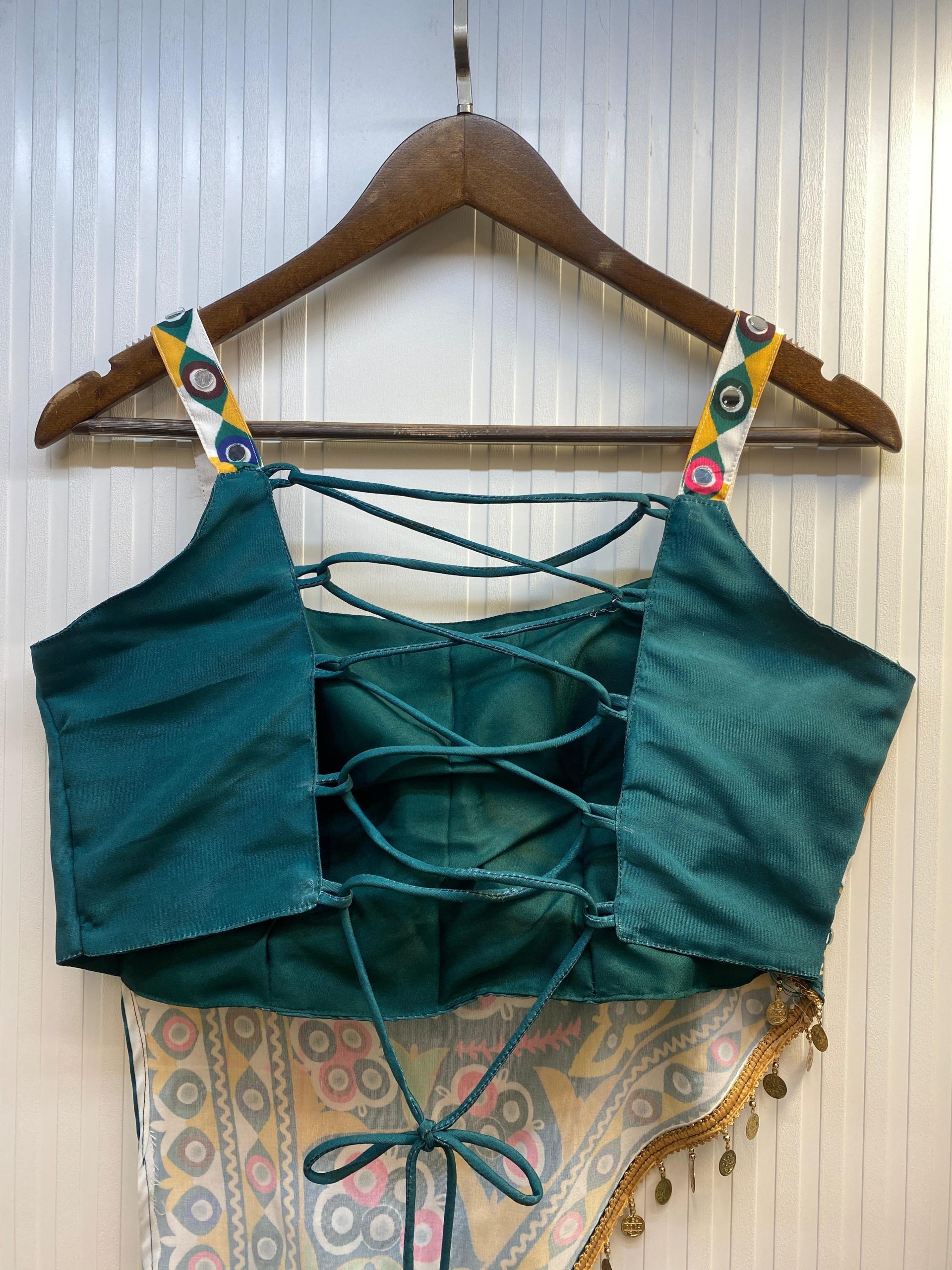 Fabric Details:- Blouse Fabrics : Printed Polly Rayon Mirror Work Free Size Inner : Micro Lehenga :. Chinon Gotta Satin Patto Inner : Micro Free Size Height : 41”inch Full Stitched Blouse And Lehenga Weight : 800 gm |