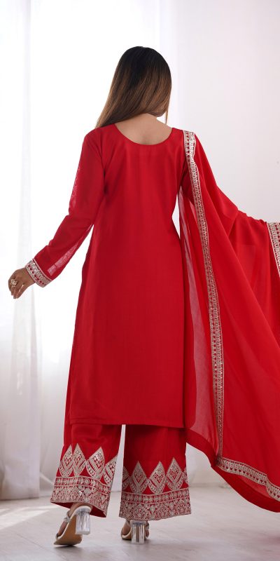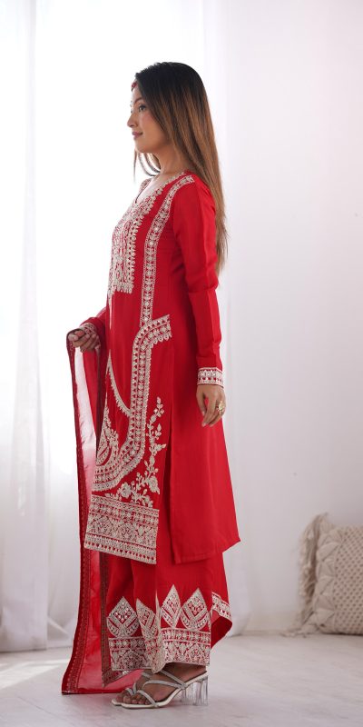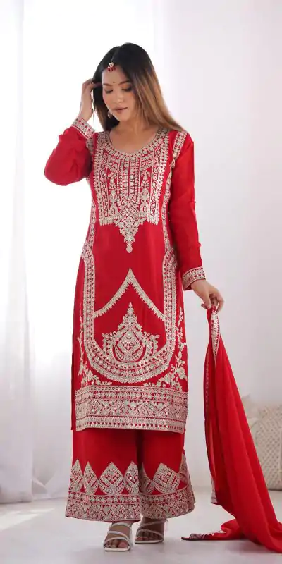 117 reviews for Red Vichitra Silk Embroidery Sequence Salwar Suit