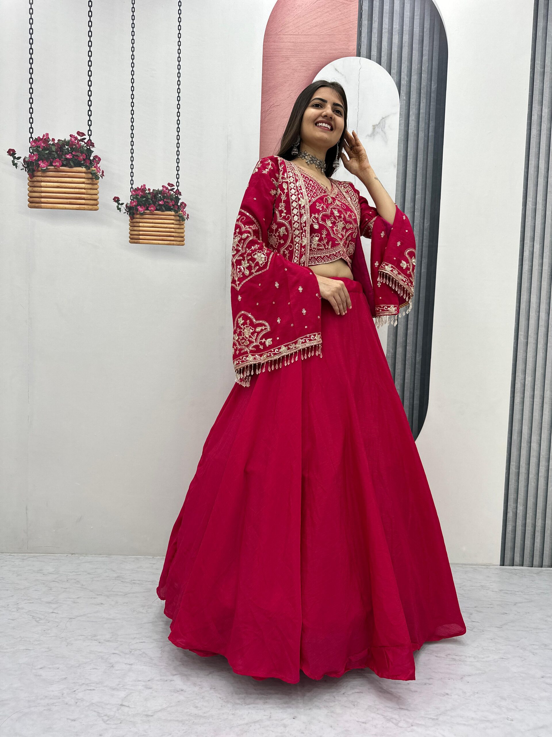 This lehenga choli is beautiful. The embroidery is so detailed, and the colors are so vibrant. The fabric is of high quality, and it drapes beautifully. I received many compliments when I wore it to a party.