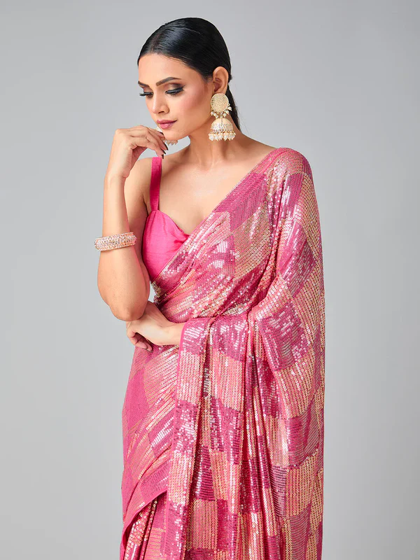 Dual Sequins Of 3mm & 5mm Sequins Work In Saree