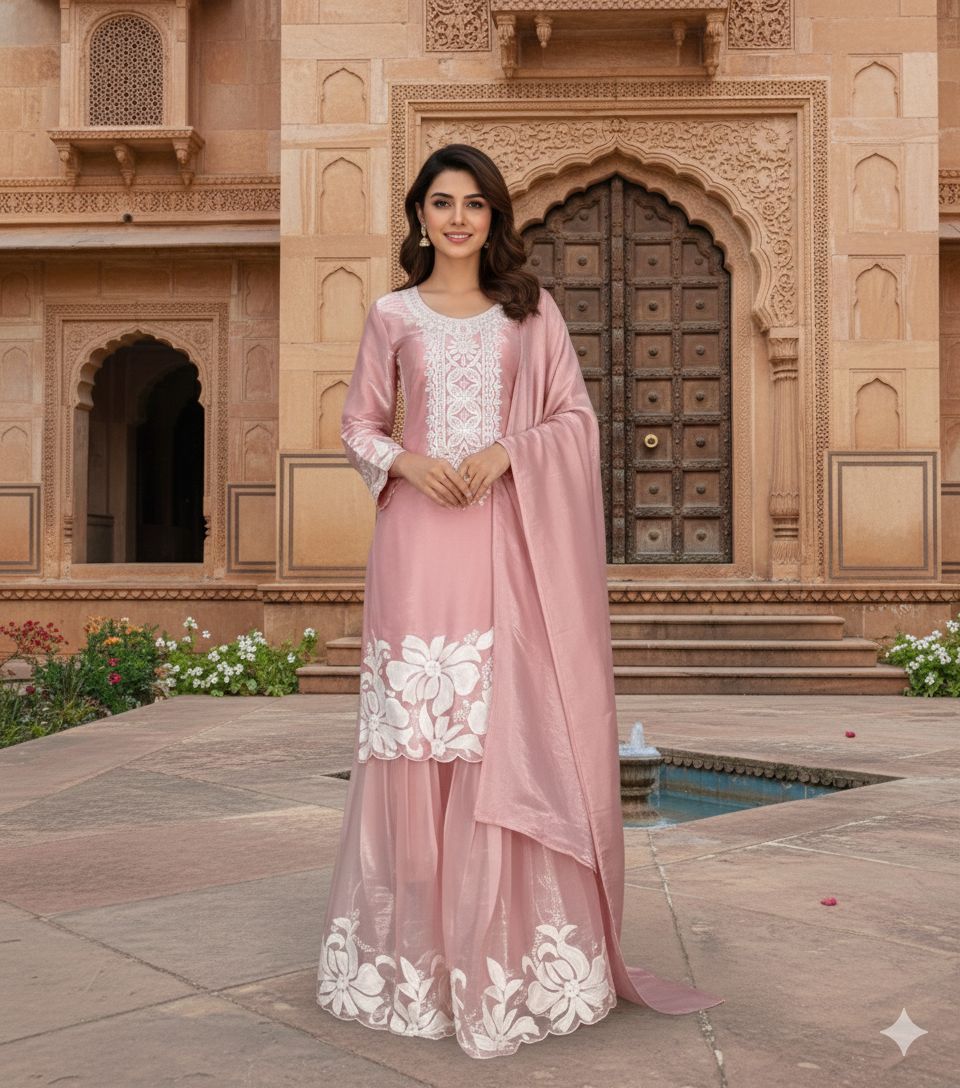 Pink Organza Silk Sequence Work Salwar Suit