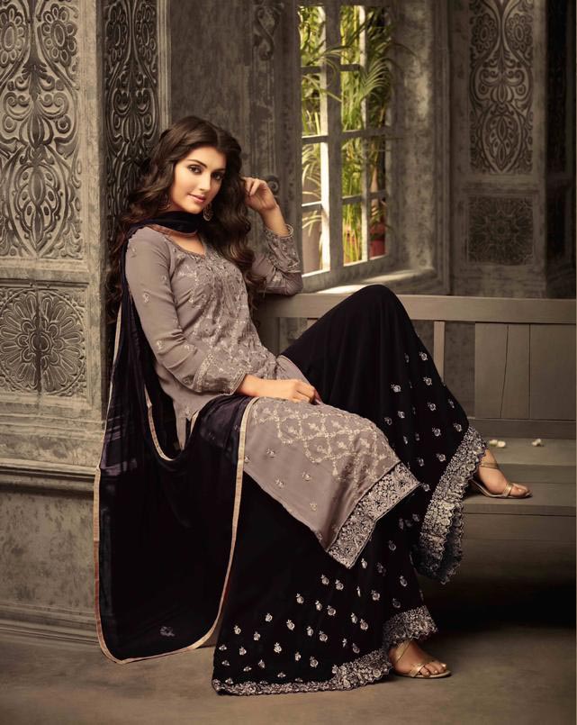 Fabrics | Top Fabric: Georgette With Embroidery work Stone Top Inner : Santoon Top Size : Free Size Fully Stitched Ready To Wear Top Length : Max up to 45 Palazzo Fabrics : Georgette With Embroidery work Stone With Inner attached Santoon Embroidery Stich Work Dupatta :- Naaman with Embroidery work Lace Type :- Max up to 48+ |