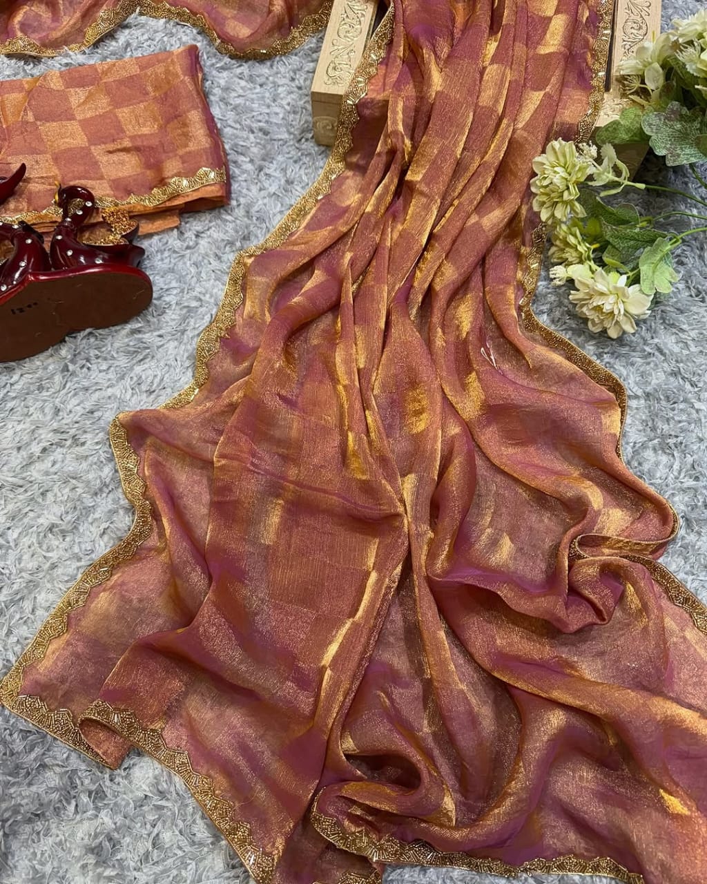 109 reviews for Peach Chiffon Pattern Hand Work Lace Saree