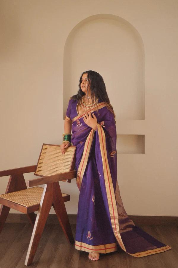 Purple Lichi Silk Jacquard Saree