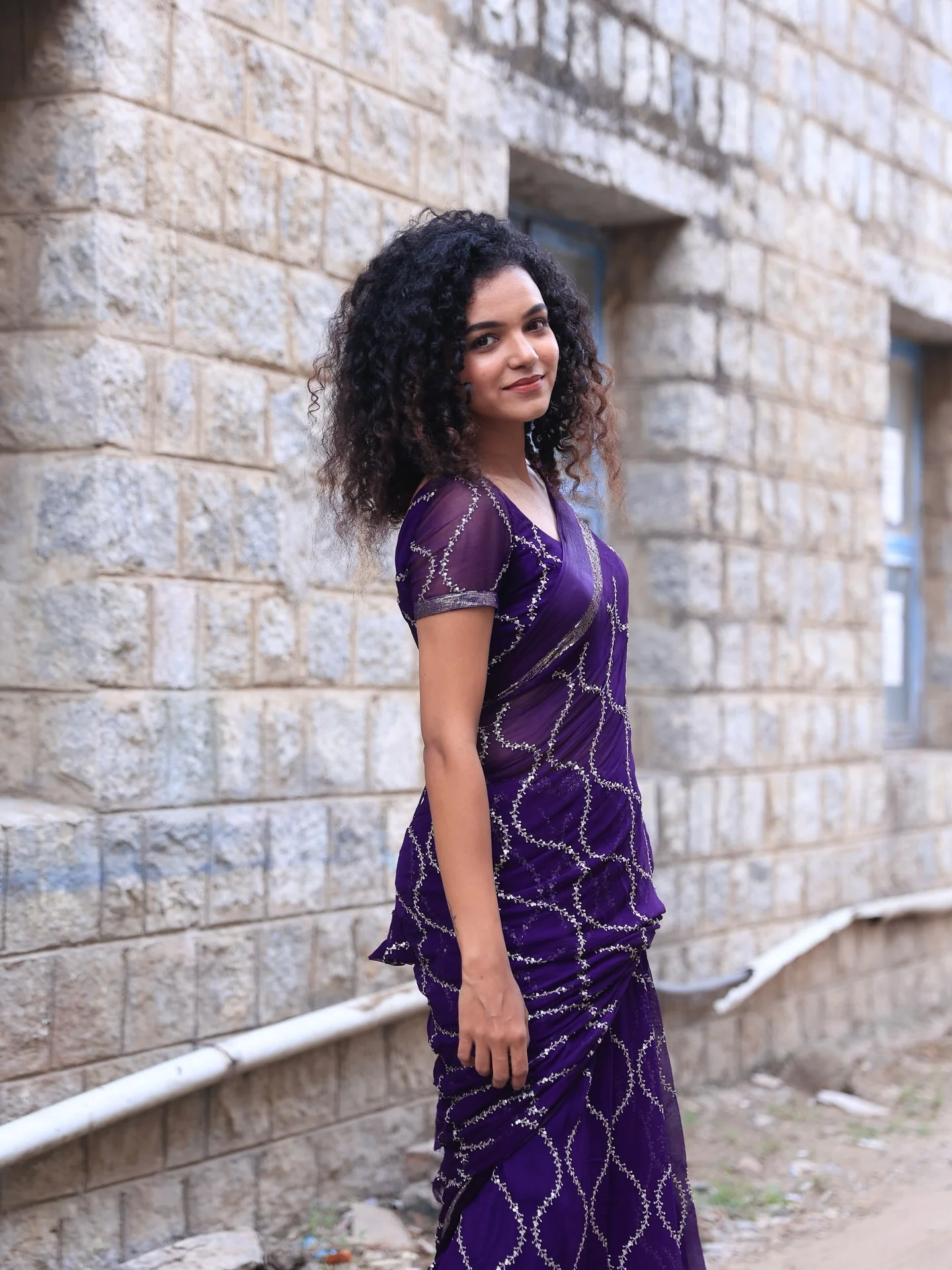 Georgette Indian saree ki beads minimal hain; agar fully glam chahiye toh aur embellishment wala option better rahega.