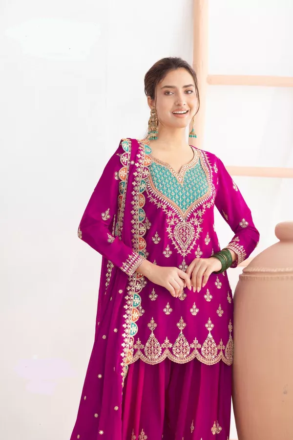 Rani Pink Chinon Sequence Mirror Work Salwar Suit