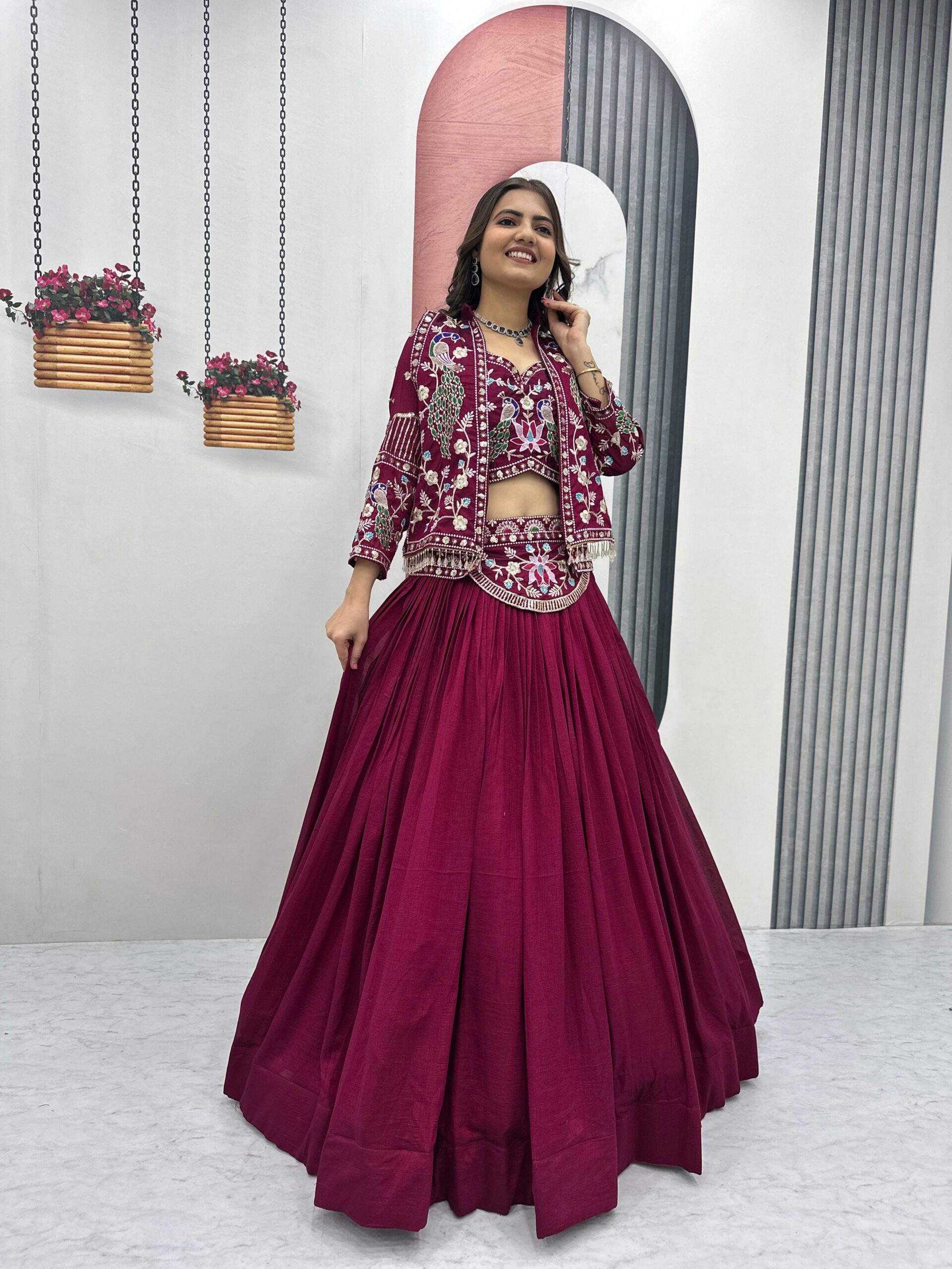 Rani Pink Vichitra Silk Thread Work Lehenga Choli