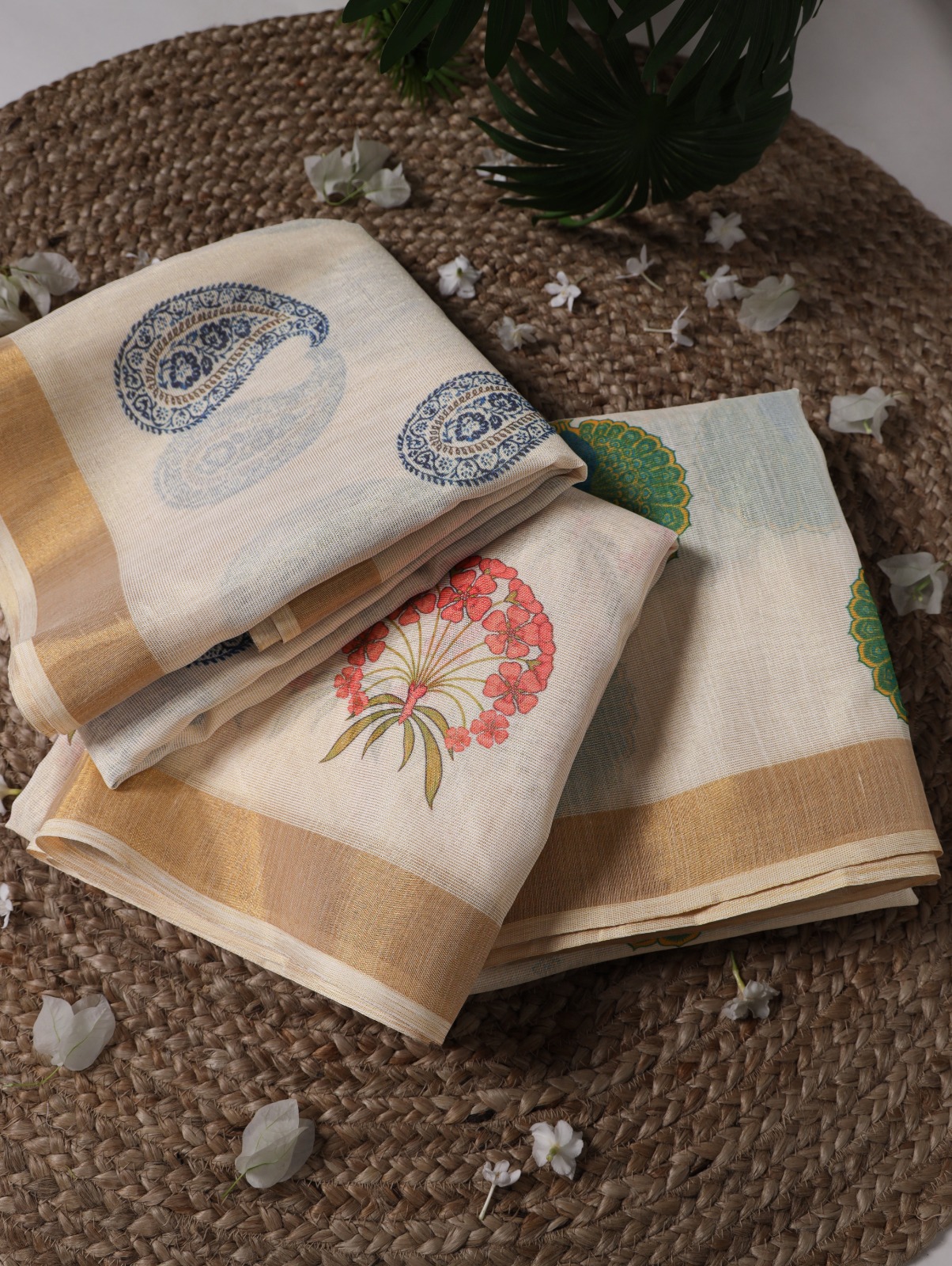 Saree Saree Fabric : Onam Saree Saree Work : Printed Saree Length : 5.5 meter Blouse (Unstitched) Blouse Fabric : Banglory Blouse Work : Bead Work Blouse Length : 0.80 Meter |