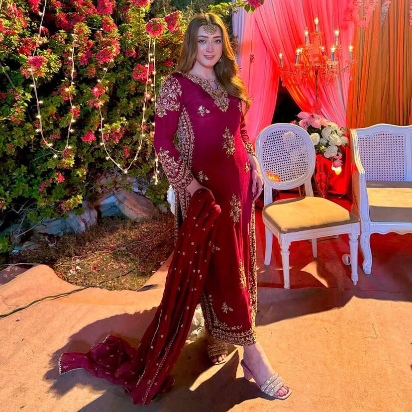 Wine Velvet Mirror Embroidery Work Salwar Suit
