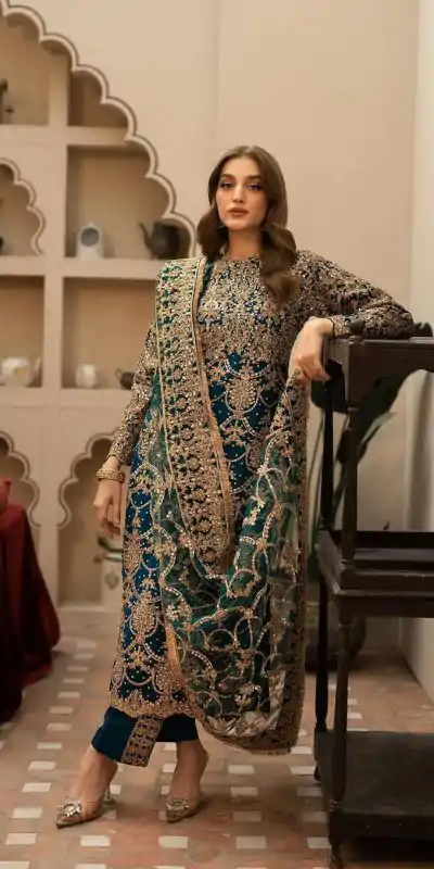 “I ordered a salwar suit with a high neckline, and it adds a regal touch to the overall design. It’s a sophisticated choice for formal events.”