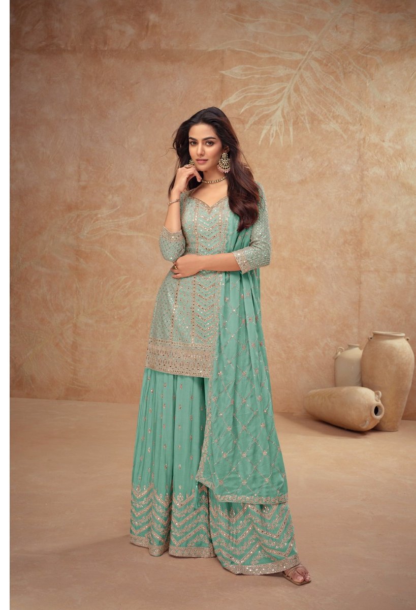 FC 7518 Sea Green Chinon Salwar Suit Perfect for Wedding, Party, Diwali, Durga Puja, Temple Visit – . Festive Deal ₹3099. Delivery 4-6 Working Days. | Jump Suits, Tops & Bottoms, Track Suits, Salwar suit, Casual Suits, Creative suits, Designer Suits, Palazzo Suits, Party Wear Suits, Patiala Suits, Straight Suits, Trendy Wear