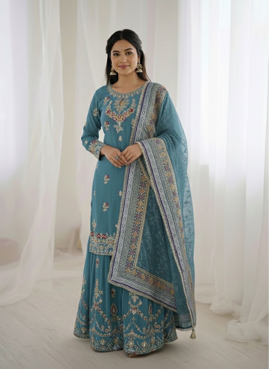Sky Blue Georgette Sequence Work Salwar Suit