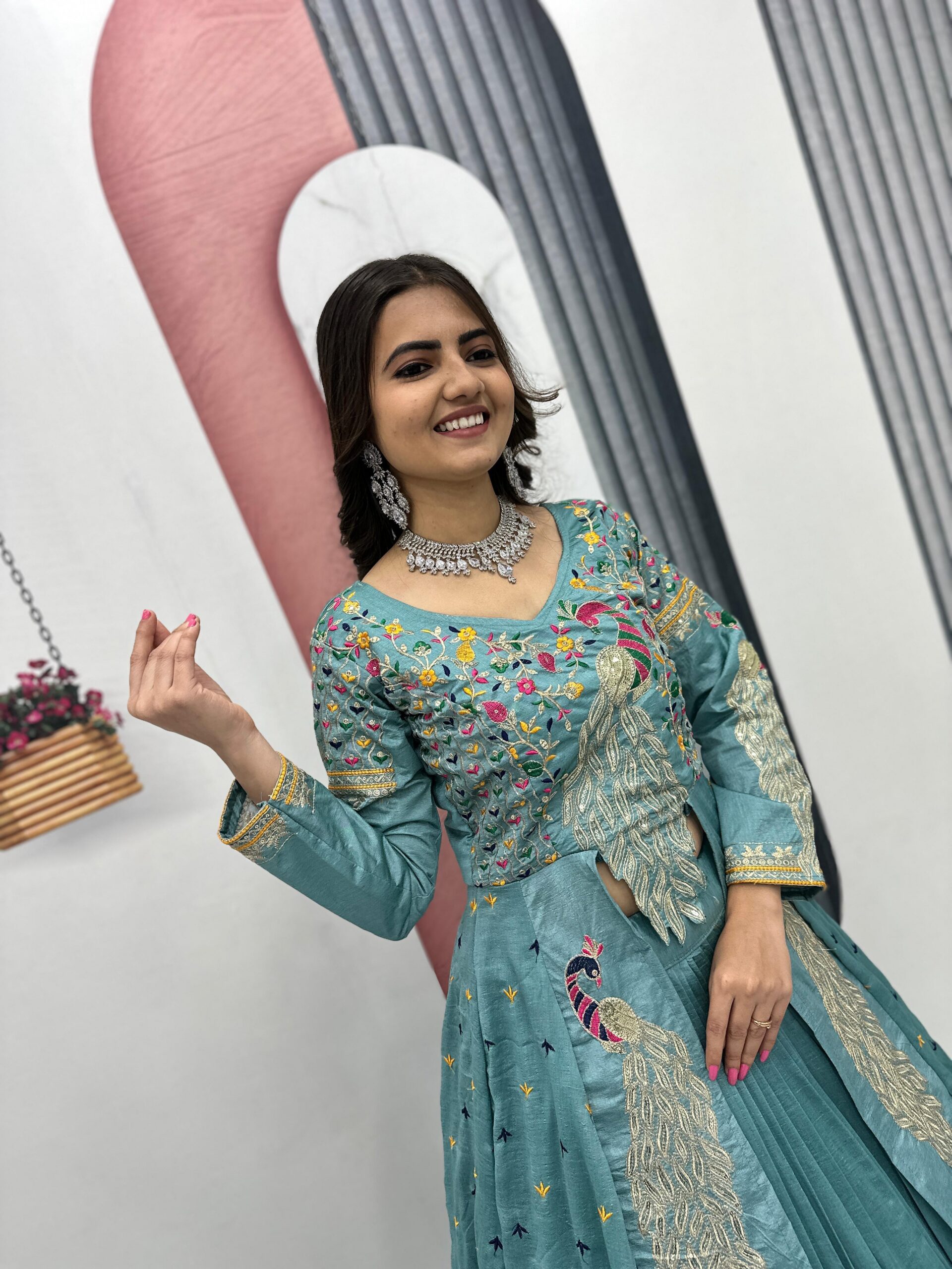 Sky Blue Vichitra Sequence Work Lehenga Choli