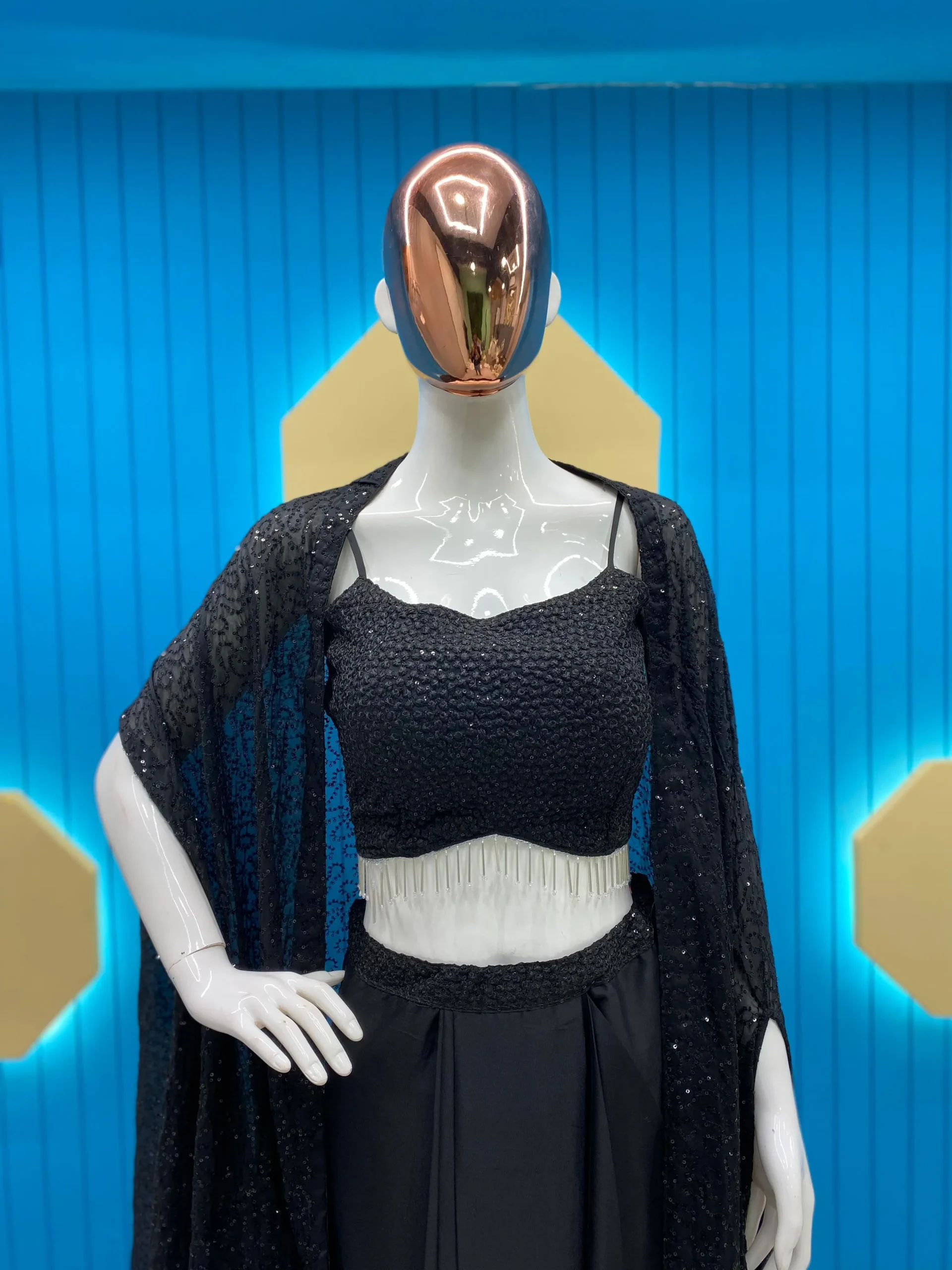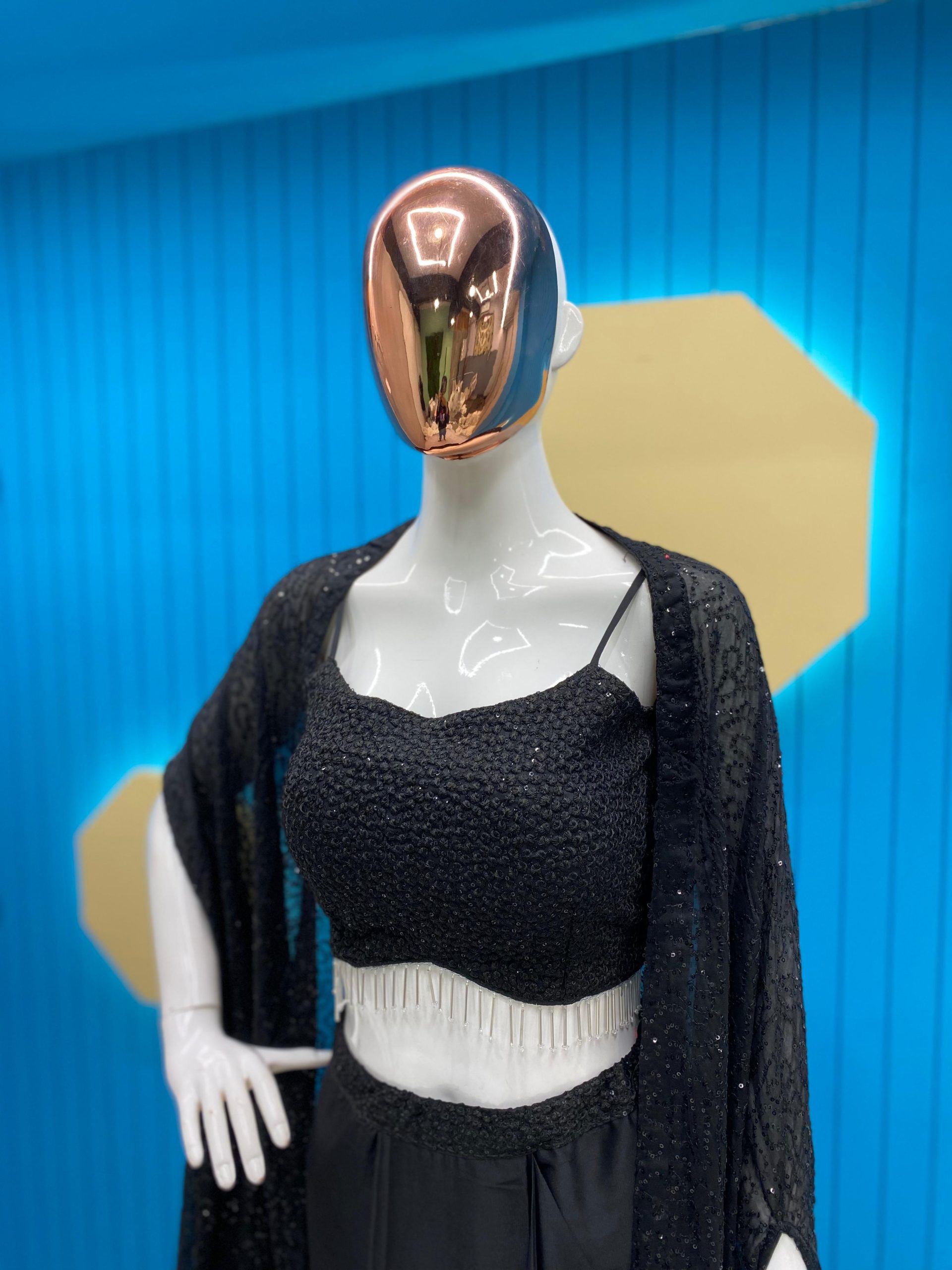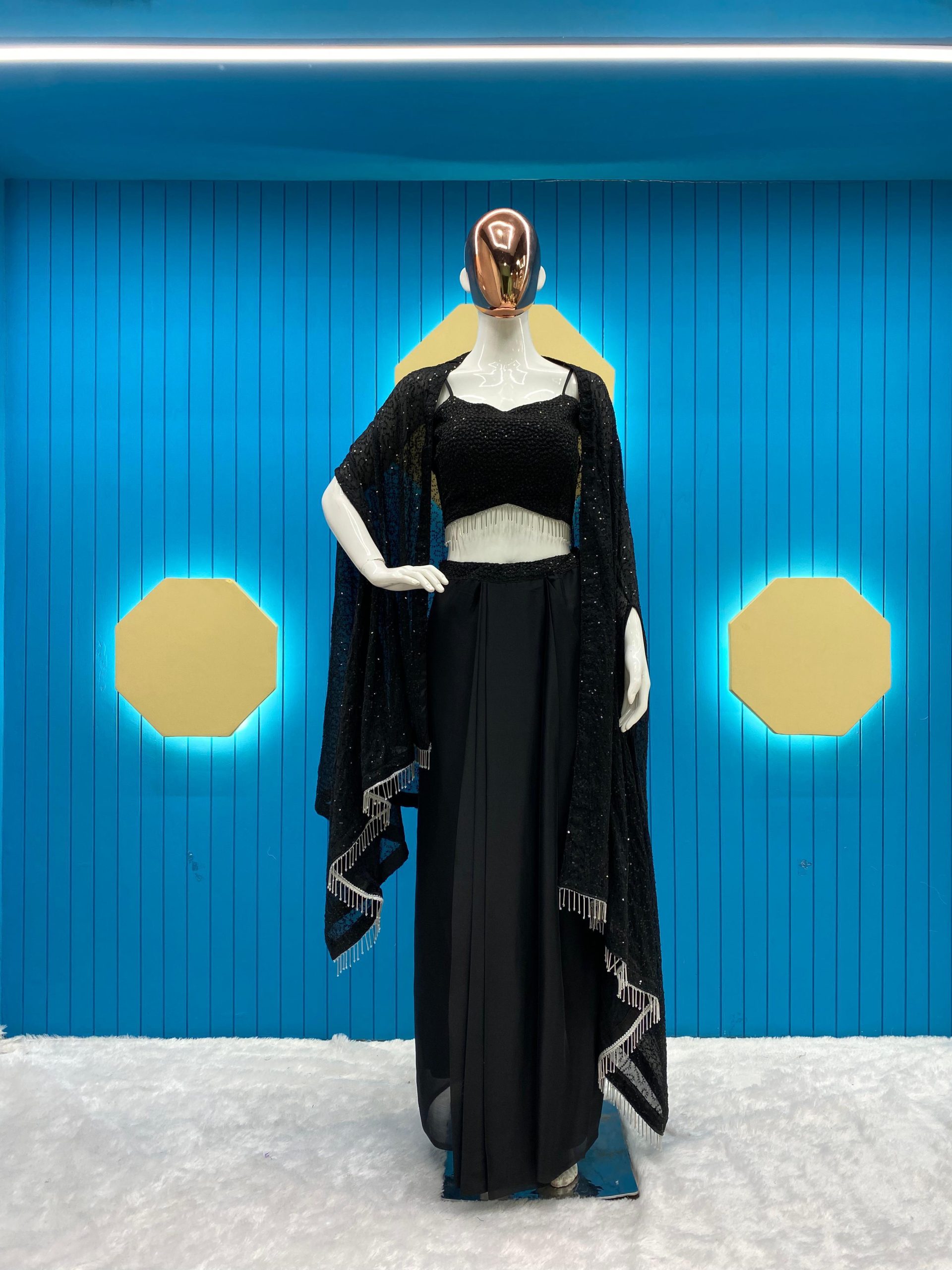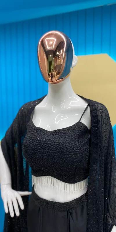 Fabrics | Shrug :Rangoli Silk Work : Heavy Sequence Threads Embroidery And Lace Draped Skirt : Fiona Silk With Sequence Embroidered Work Full Flair Full stitched Free size Tube Choli : Rangoli Silk With Heavy Sequence Threads Embroidery Work Full stitched Fit Up to 44″ Height : 13.5” Inch Extra Sleeve Also Comes |