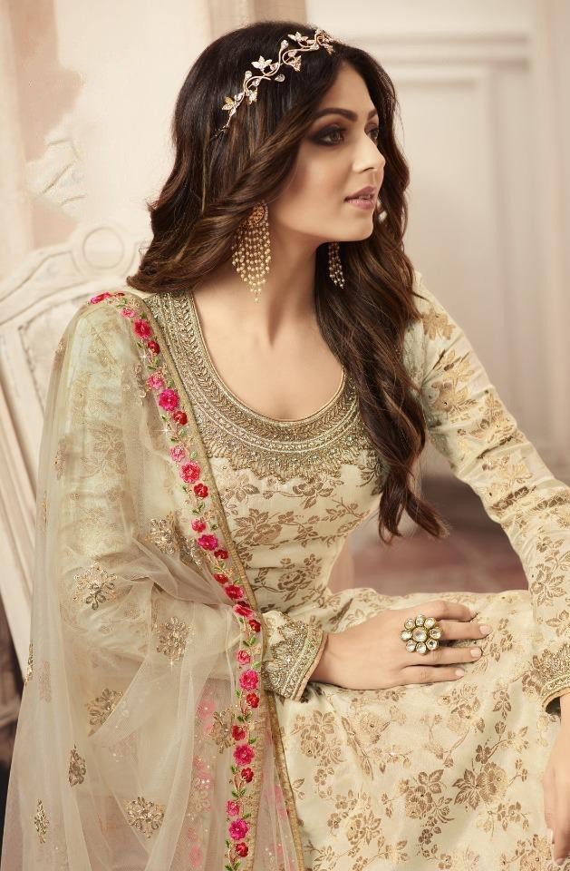 Cream Jacquard Silk Georgette Diamond Sharara Suit