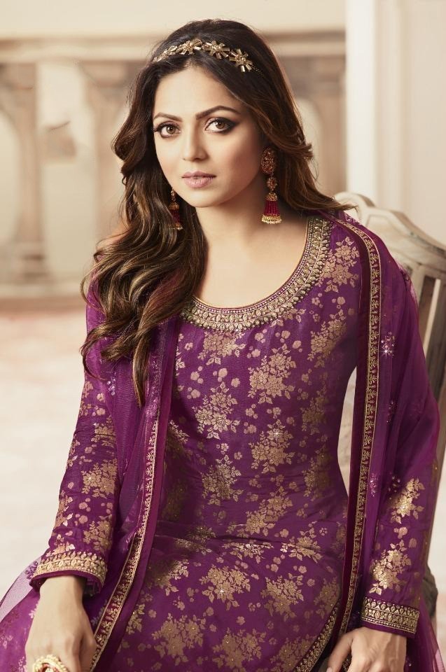 Purple Jacquard Silk Georgette Diamond Sharara Suit