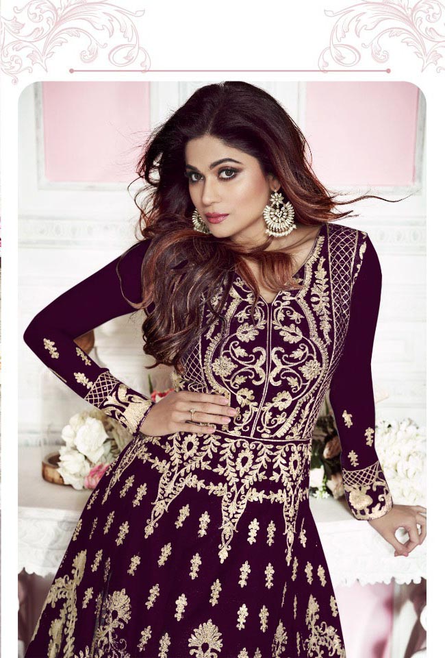 Maroon Net With Chain Stich Stone Work Anarkali Gown