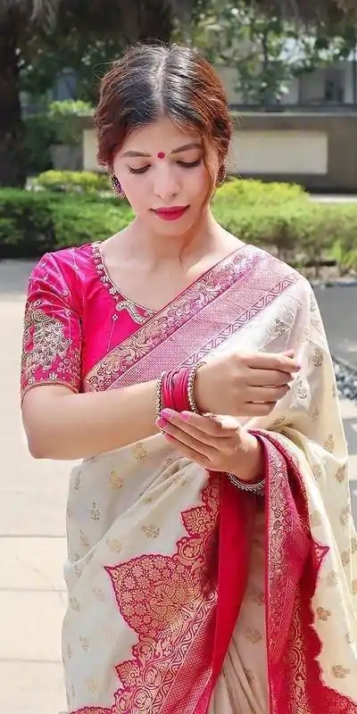 Half White Soft Litchi Silk Jacquard Work On All Over Saree