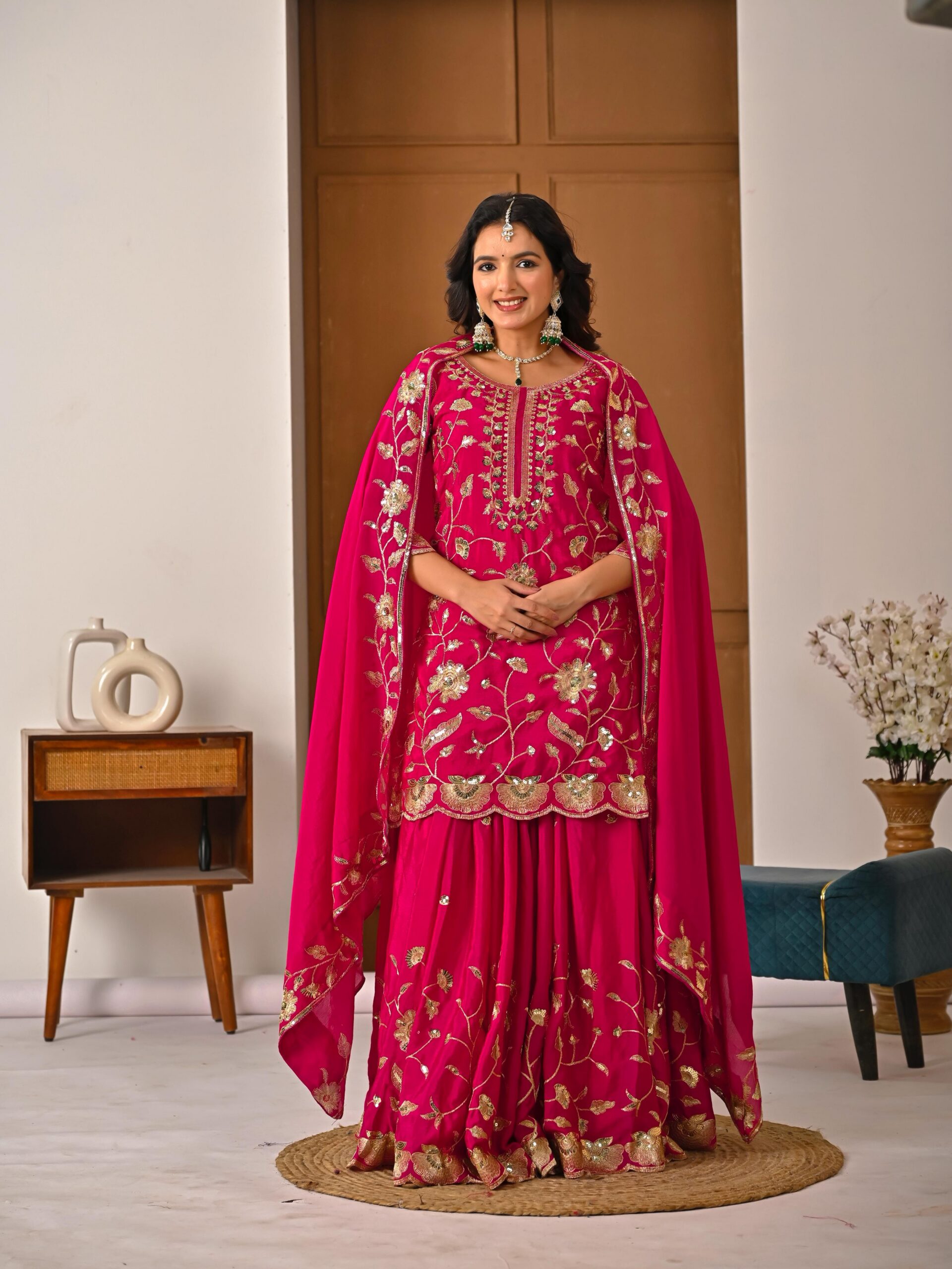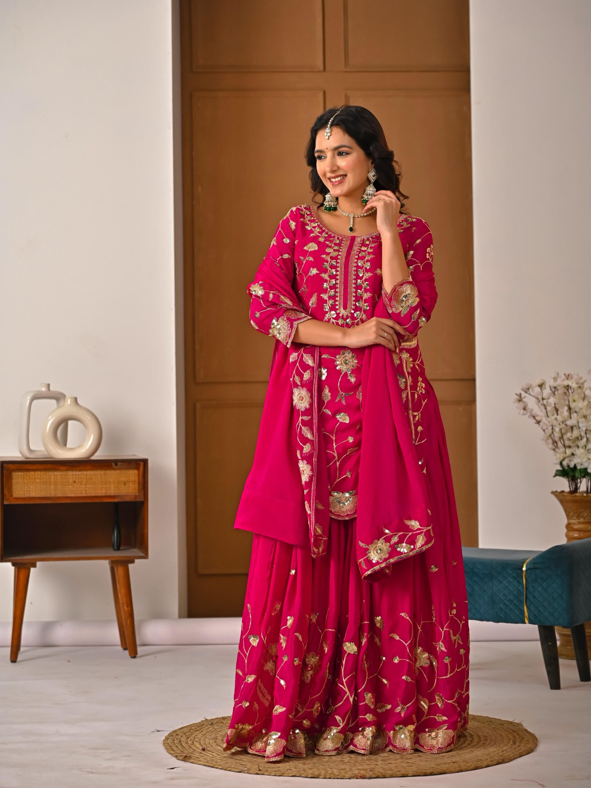Rani Pink Vichitra Embroidery Work Salwar Suit