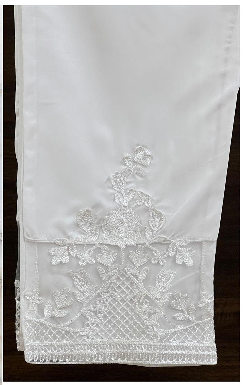Fabrics | Top: Heavy Georgette with inner crepe Heavy Embroidery work Inner : Micro Work. :Embroidery Work Stich. :M:38” L:40” XL:42” XXL:44” Pant: Malay Silk Embroidery work Border Top Length : 40 Length Pant: 39 |