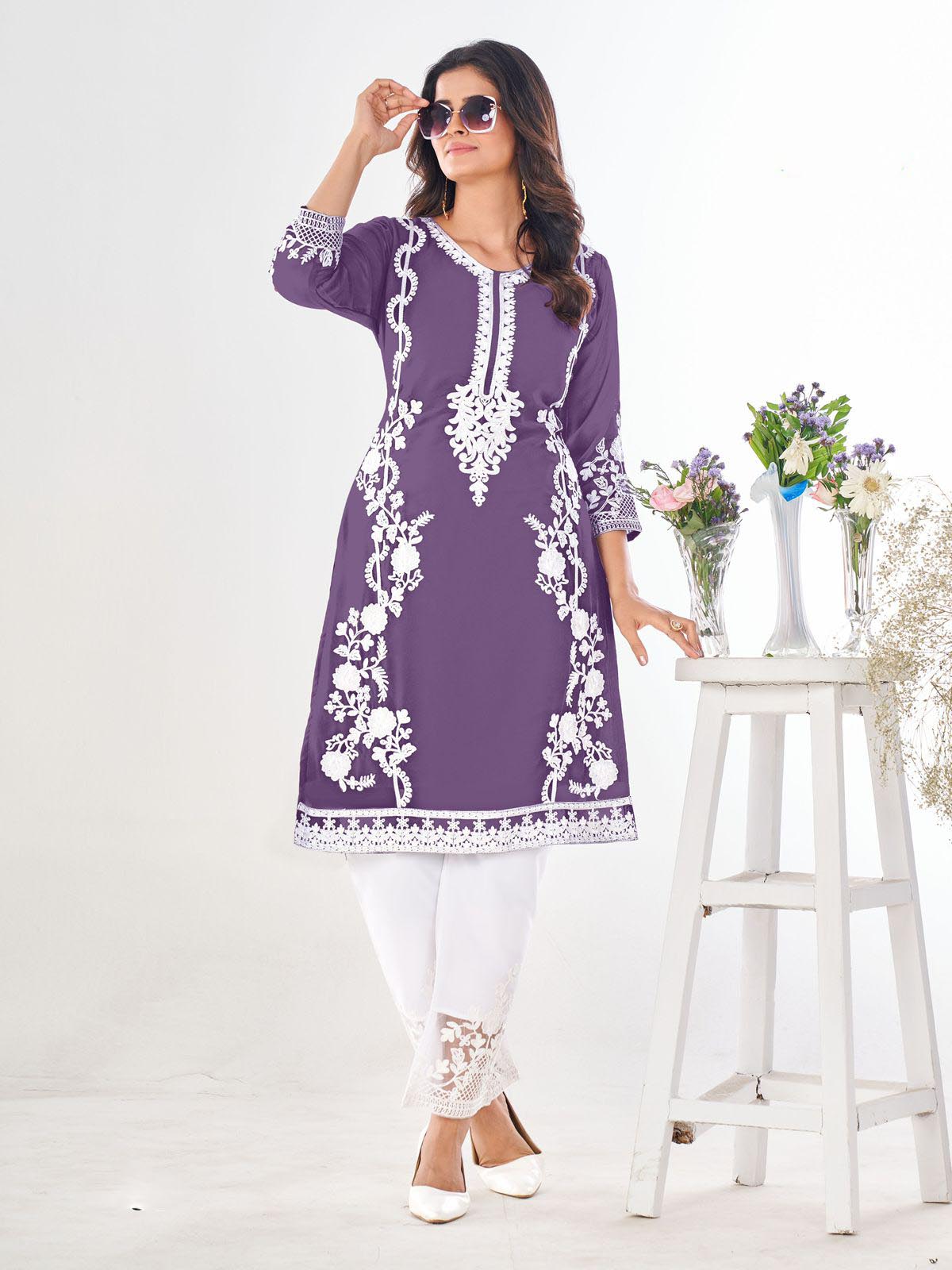 137 reviews for Purple Georgette and Heavy Embroidery work Kurti With Pant