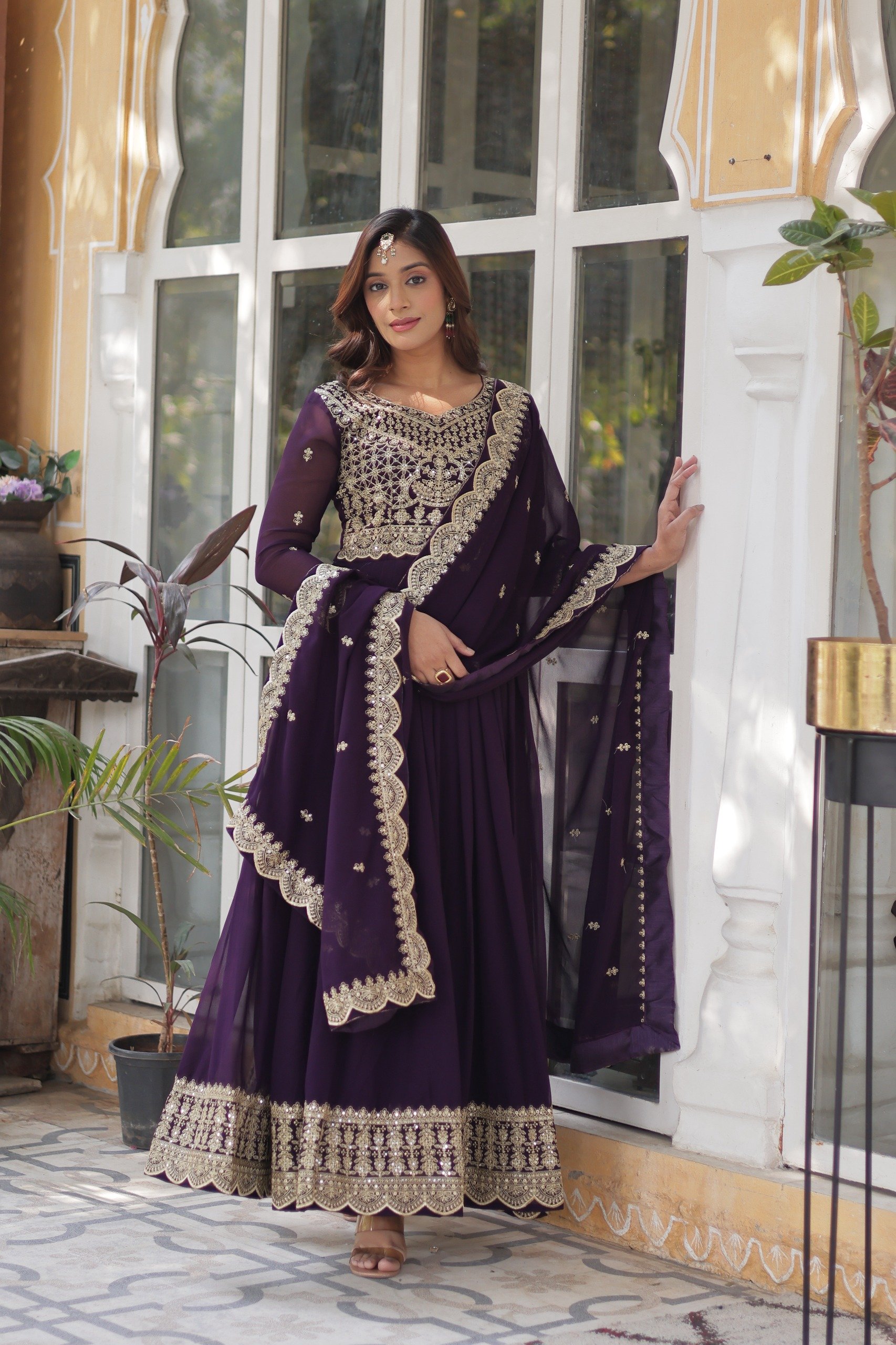 Fabric & Work:- Faux Blooming With Embroidery Zari Sequins-work