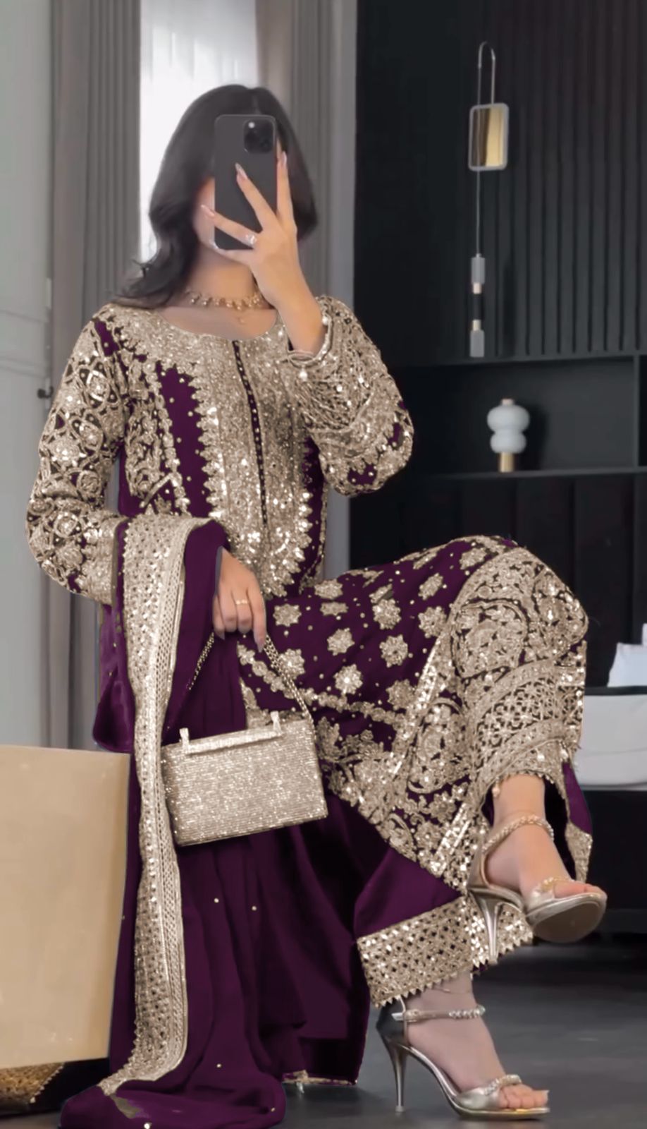 Top Top Fabric : Faux Georgette With Heavy Embroidery Sequence Work And Full Sleeve With Revet Moti Top Inner : Heavy Micro Cotton Top Length : 47-48 inch Top Size. : Free Size Semi Stitched (FULLY STITCHED READY TO WEAR) Pent Pent Fabrics : Faux Georgette With Heavy Embroidery Sequence Work With Elastic (Full stitched) Pent Length : 40-41 Inch (fully stitched) Dupatta Dupatta Fabric: Faux Georgette With Embroidery Sequence Work Lace Border |