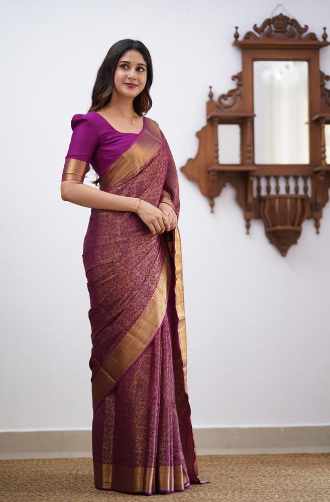 Wine Lichi Silk Border Jacquard Work Saree