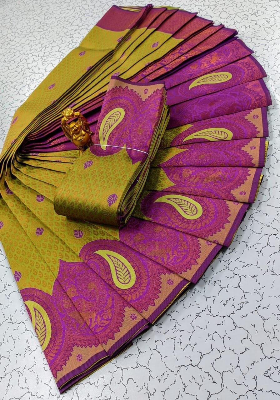 Fabrics | Saree : Soft Litchi Silk work :kubera pattu saree with beautiful contrast border and all over weaving design also color Blouse : contrast blouseSaree cut : 5.50+ meter |