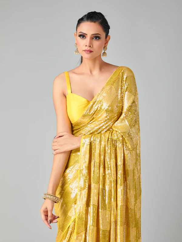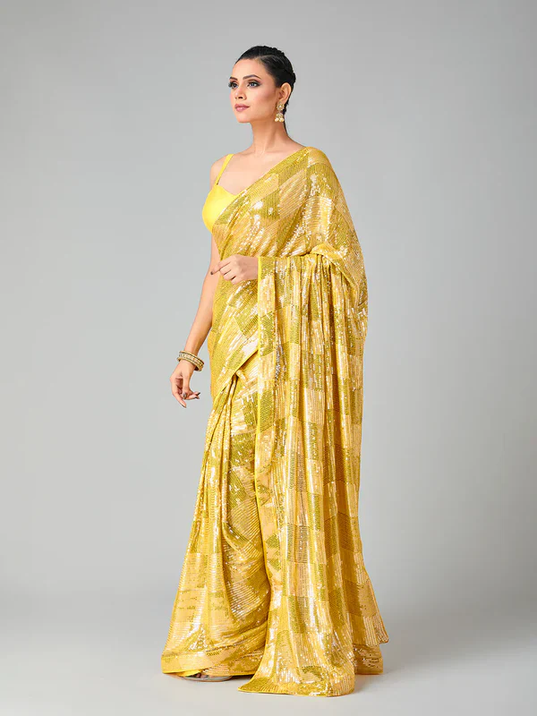 Dual Sequins Of 3mm & 5mm Sequins Work In Saree